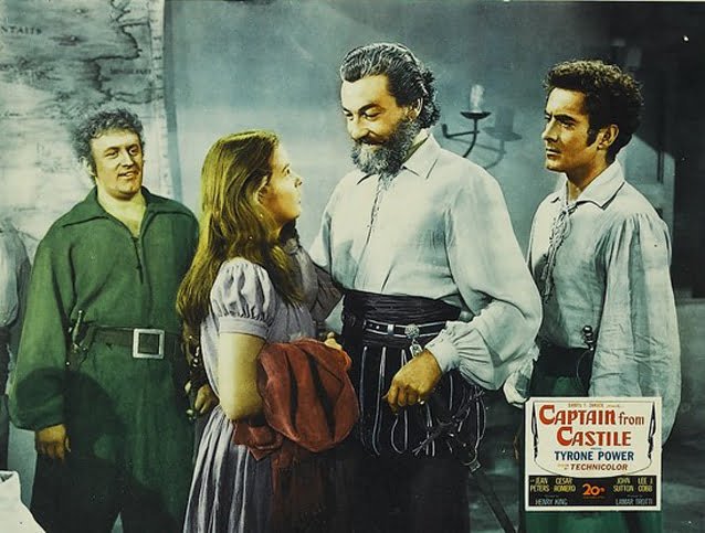 “Un capitán de Castilla” (1947), era otra adaptación literaria, esta vez de una novela de Samuel Shellabarger, autor de exitosos Bestsellers históricos (entre estos “El príncipe de los zorros”, llevado al cine también por Henry King en 1949, con Tyrone Power y Orson Welles como Orsini y César Borgia, respectivamente) y publicada dos años antes. La novela, que según el célebre crítico de cine Bosley Crowther (The New York Times, 26 de diciembre de 1947) había sido concebida con “el cine y el tecnicolor en mente”, narra la aventura de Pedro de Vargas (Tyrone Power), noble español perseguido por el inquisidor Diego de Silva (John Sutton), que viaja a la América continental en pleno proceso expedicionario español y se ve involucrado en la Conquista de México por Hernán Cortés (interpretado por un César Romero “indisciplinado”, que apenas permitía ser dirigido).