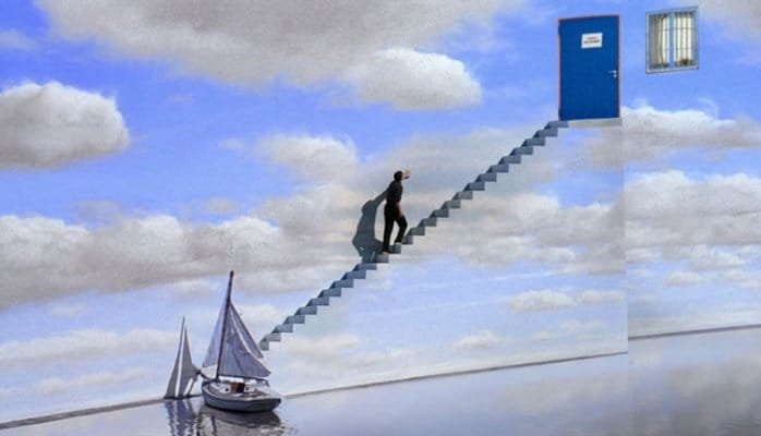 Esta vez, en “The Truman show”, Peter Weir conduce el asunto a través de los terrenos del absurdo: el hombre que se descubre “conejillo de indias” de una gran confabulación —de un vouyerismo televisivo, de una mirada masiva que disfruta vigilarlo en secreto porque es una vida real, incluso, cuando se cepilla los dientes—; el personaje central de una telenovela que, paradójicamente, es el único que no está actuando y el único que ignora dónde se encuentra y para qué está sirviendo.