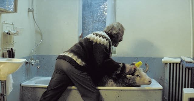 “Carneros” es la segunda película de Grímur Hákonarson (1977) y está situada en la campiña islandesa. Gummi (Sigurður Sigurjónsson) y Kiddi (Theodór Júlíusson) son dos hermanos sexagenarios y solitarios que se dedican a la crianza de ovejas, cada uno en su propia granja, una frente a la otra, aunque no se hablan desde hace cuarenta años. A raíz de una competencia de carneros en la que triunfa un semental de Kiddi, su hermano descubre que el animal es portador de “tembladera”, una enfermedad contagiosa y devastadora que provoca el sacrificio de todas las ovejas de la región. Para los dos hermanos aquello supone una tragedia, porque deben exterminar a los últimos descendientes de una estirpe de ovejas campeonas, cuyo valor sentimental es muy grande para ambos. Todo esto funciona como una metáfora y un pretexto para que los dos hermanos puedan cambiar su hostilidad por empatía. “Carneros” tiene el mérito de construir una historia profundamente humana, sobre el resentimiento y la solidaridad, sobre la posibilidad de los reencuentros y la reconciliación. Está disponible en Eyelet.com