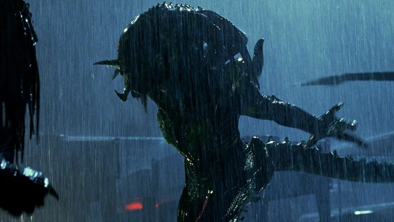 Es una escena muy sencilla, en la que la protagonista, que encarna Aylesworth, y su pequeña hija, corren en medio de la lluvia. Vemos que se repite la escena varias veces pero de los monstruos ni sus luces, sólo acaso hemos visto un par de disfraces en un camión, cuyos responsables se han apresurado a poner lejos de nuestra vista cuando reparan de mala gana en nuestra presencia.