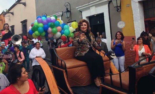 Alrededor de las 7 de la noche, el andar de las horas ha ido acrecentando el espíritu carnavalesco entre las callejuelas de San Miguel Allende que se adornan con el desfile encabezado por la “Novia de México” montada en calandria, repartiendo besos y perseguida por banda de viento, mojigangas y un gran número de admiradores. Fue así como la homenajeada arribó a la alfombra roja que la esperaba afuera de los Cines Aldama, donde se llevaría a cabo la ceremonia inaugural dirigida por los actores mexicanos Damián Alcázar y Aracelia Ramírez.
