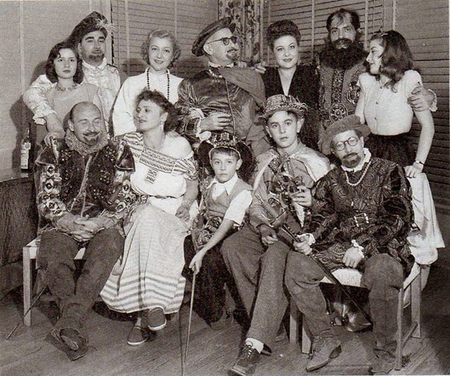 Velada tenoriesca. En la fila de atrás. Janet y Luis Alcoriza son la segunda pareja, a la derecha se encuentra Buñuel con barba. Sentados, su esposa Jeanne Rucar y sus hijos Rafael y Juan Luis.