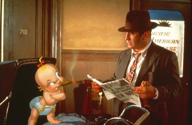 Bebé Herman y Bob Hoskins en “Quién engañó a Roger Rabbit”, 1988.
