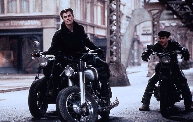 Pero son muchos más los elementos, en “Calles de fuego”, los que nos remiten al western clásico. Aparentemente, el interés de Tom al rescatar a Ellen es sólo monetario –no sería sino un caza recompensas, como muchos vaqueros habituales del Far West–, pero nos enteramos que en el tipo duro se agitan los antiguos recuerdos sentimentales. Su empleador es Billy Fish (un Rick Moranis antipático –como siempre–, previo a convertirse en el bufón idiota de “Los cazafantasmas”), el novio más reciente de Ellen, y su manager. Desde “El mago de Oz” (The Wizard of Oz, Victor Fleming, 1939), sabemos que la fórmula más efectiva es que, nuestros personajes, en su viaje iniciático –o en su escape a la nada, que termina siendo lo mismo–, se vayan encontrando a otros, tan interesantes como ellos, así, a Tom lo secunda en su misión McCoy (Amy Madigan), otra ex soldado desempleada, que se ofrece acompañarlo por mil dólares, de los diez mil que le pagaría Billy por el rescate de Ellen.