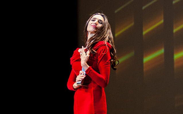 La española Ángela Molina, Premio Guadalajara Iberoamérica, no tuvo que decir nada, porque son un vestido largo color rojo pasión, dejó a los presentes con la boca abierta. “El cine es necesario para seguir soñando”, dijo la actriz, quien ha trabajado con grandes del cine como Buñuel y Almodóvar, entre otros. Pocos saben que Molina, además de excelente actriz, es cantante.