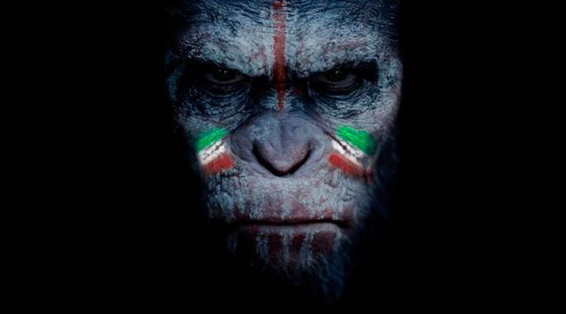 ¿César apoyando a la selección mexicana de fútbol? El líder de los simios rebeldes en la saga reflotada de “El Planeta de los Simios” sería un fan del seleccionado tricolor según la oficina mexicana de la  20th Century Fox. La idea de ampliar las manchas “de guerra” que se pintan los monos para enfrentarse a los humanos con los colores de la bandera y la selección de fútbol mexicana, pudo parecer ocurrente para los ejecutivos del estudio estadunidense (ahora en manos del australiano Murdoch), pero no le ha sentado bien a todo el mundo.