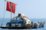su taxi como balsa con el absurdo plan de navegar hasta Florida y