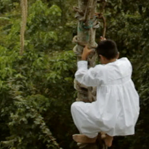 como a una escuela de niños voladores en la selva, fuera de Papantla.