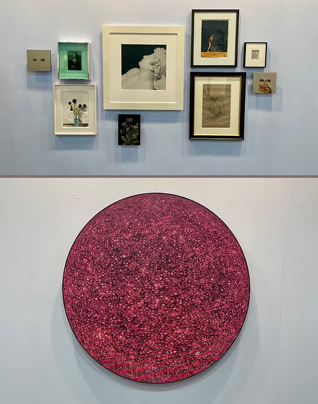 Quizás nuestra favorita fue la presentada por la galería Cohju que llegó desde Kyoto para presentar a la artista Mio Yamato, con su hipnótica serie The Breathing Star. Es una serie pictórica en la que mezcla tinta roja con diferentes densidades de agua jabonosa para formar burbujas que va reventando una a una, haciendo que cada círculo tenga un dibujo particular.