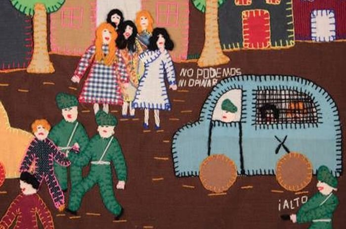 En su cuarto corto “Como alitas de chincol” (2002), Barry realiza una de las primeras reflexiones animadas sobre el golpe de estado efectuado por las Fuerzas Armadas el 11 de septiembre de 1973 en contra de Salvador Allende. Barry no se sitúa desde la posición de la artista forzada al exilio (ella, como muchos otros animadores chilenos, se refugió en Dresde, Alemania, experiencia que representa en su corto “Nostalgia de Dresde” [1991]): en cambio, Barry opta por recuperar la historia de las arpilleras que se opusieron decididamente a la dictadura de Pinochet plasmando en sus tapetes bordados la historia “desde abajo”, siguiendo el término de Hosbawm. Muchos de sus esposos fueron desaparecidos y asesinados, sus casos fueron invisibilizados y desoídos por el sistema judicial. Las mujeres comenzaron a manifestarse sin conseguir alguna respuesta. Ya sabían a lo que se enfrentaban. Para contar su historia se valieron de lo más inmediato y lo más propio: su trabajo. Encarcelamientos, bombardeos, saqueos, despojos, torturas, todo ello quedaría documentado en los tapetes que bordaban y lograban enviar al extranjero para ser vendidos. El terror y el sufrimiento no podían encarnarse de un modo más explícito.