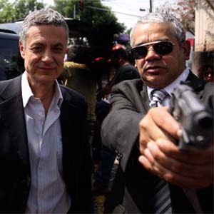 Las primeras escenas son difíciles porque en México, a diferencia de otros países, no se ensaya, uno llega a filmar con las nociones generales del personaje; uno no sabe dónde anclar el personaje y sólo se encuentra a partir de que empiezas a filmar; digamos que al segundo o tercer día de filmación ya sabes por dónde vas a llevar al personaje. La escena más difícil que he hecho hasta ahora es una con el gobernador donde le llevo unos videos y le tengo que decir que para rescatar esos videos tuve que matar a unos de sus amigos. ¿Cómo haces le confiesas a tu jefe que mataste a uno de sus amigos?