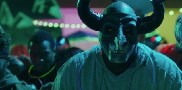La fractura del tejido social de la comunidad afroamericana es mostrada a través de las divisiones al interior de la pandilla encabezada por Dimitri y por el comportamiento irracional de un frenético y solitario Skeletor que parece ser el único entusiasmado con asesinar. El resto se concentra en encerrarse en los templos a orar y organiza fiestas en las calles. En el peor de los casos, algunos se comportan como en Halloween: rompen ventanas y cometen delitos menores. Impotentes y ridículamente atónitos (el personaje de la psicóloga social es tan desafortunado como absurdo), los encargados de vigilar la purga no entienden por qué en vez de matarse masivamente, como se supone que deberían hacerlo, los residentes de Staten Island deciden celebrar y fortalecer sus lazos comunitarios. La —de por sí escasa— creatividad de DeMonaco y McMurray alcanza aquí su punto más bajo, ofuscados, sí, por sus buenas intenciones. Para provocar una masacre, conseguir el apoyo económico necesario y así implementar la purga en todo el país, un grupo de infiltrados (rusos, neonazis, del Ku-Klux-Klan) ataviados con máscaras comienzan a atacar sin piedad a los habitantes del barrio.
