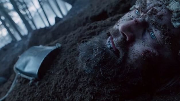 Precisamente la película arranca en una casi onírica y terrible escena del ataque de los indios (“Rojos” les llaman) que nos sitúa en el tono hiperrealista buscado por Iñárritu. La batalla-pesadilla, conducida por la incansable cámara de Lubezki, obliga a huir a los supervivientes, pero para Glass, las cosas van a ir a peor cuando es atacado —en una escena de increíble veracidad— por un gran oso, que lo deja malherido. El grupo se desgaja, y Fitzgerald queda a cargo del moribundo cazador, junto al hijo de este y otro joven miembro del grupo. El villano de la película mata al retoño de Glass y a él lo abandona semienterrado. Pero sus conocimientos del medio y la suerte le hacen sobrevivir, con la única idea de vengarse de Fitzgerald.