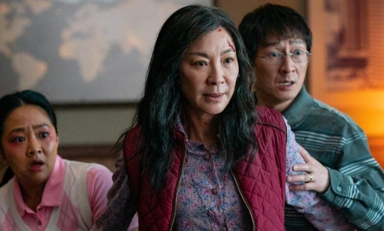 Evelyn, interpretada por Michelle Yeoh (“El Tigre y el Dragón”), es una inmigrante china que vive en Estados Unidos y que está atravesada por la insatisfacción, tanto económica como familiar. De un momento para el otro, se sumerge en una aventura salvaje en la que es elegida para salvar al mundo. A partir de allí, la protagonista comienza un viaje de locos a través de sus distintas versiones del multiverso.
