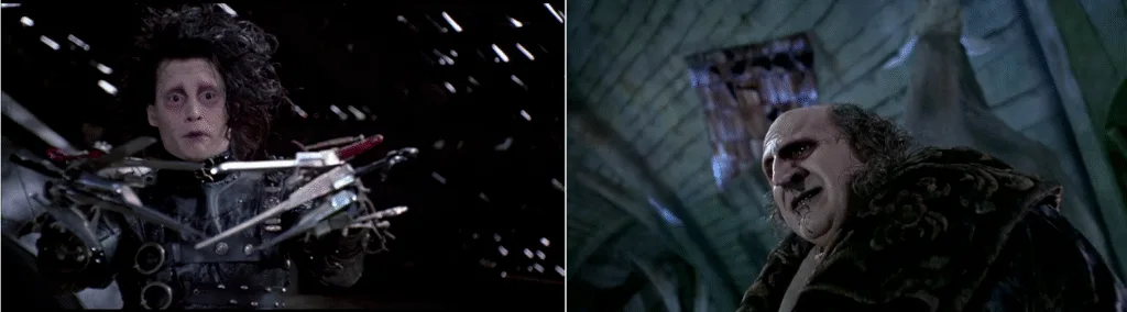 Figuras 7 y 8 El maquillaje y el fondo general del Pingüino son similares al personaje principal de El Joven Manos de Tijeras (1990, Tim Burton director)