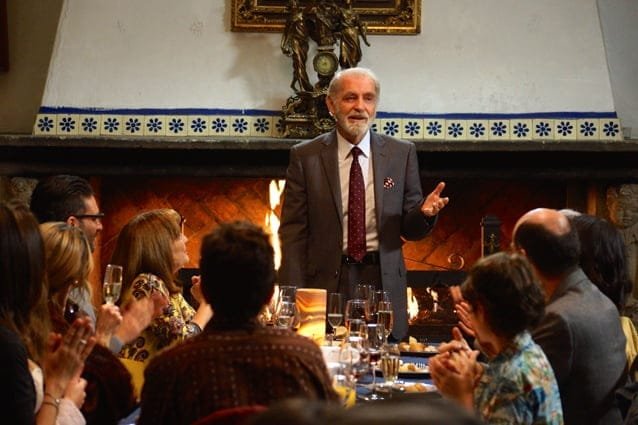 Fernando Luján en pleno brindis familiar.