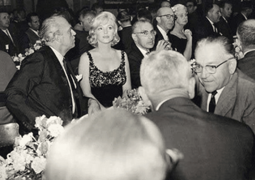 La demanda para conocer a Nikita supero todas las expectativas, y no era posible satisfacer a todos. En el café de los estudios sólo cabían 400 personas, y en la criba resultante se impuso la idea de que, en el caso de las grandes estrellas estas sólo pudieran ser acompañadas por sus cónyuges si también lo eran. Otros, conservadores a ultranza, se descartaron a sí mismos. La estrella de la compañía, Marilyn Monroe, fue requerida, pero su marido en ese momento, Arthur Miller, que había sido llamado a declarar por la comisión McCarthy, se rehusó a asistir. Solidaria, Marilyn no estaba interesada, pero recibió un halago (“Es que, en la URSS, de Norteamérica no conocen mas que a Marilyn y a la Coca-Cola”) y un ultimátum: Debía asistir, con el vestido más entallado que pudiera. De su parte ella añadió un generoso escote y, algo raro, fue la única vez que no llegó tarde a una cita.