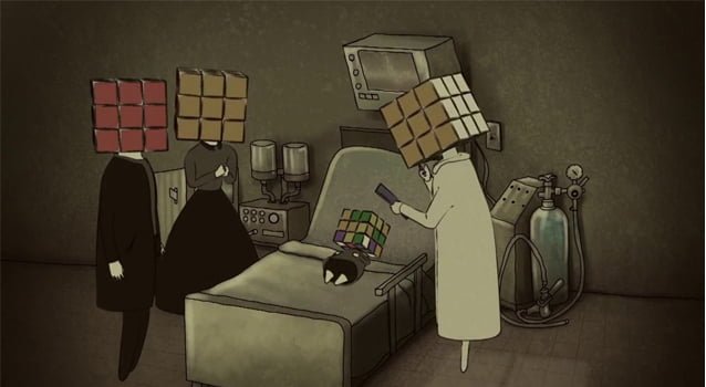 La categoría Universitaria, mucho más consistente, ha resultado una grata sorpresa. Nuevamente un corto iraní me cautivó por la originalidad con la que plantea una sutil y contundente crítica a una forma de gobierno cuasi-totalitaria que pretende controlar desde la vestimenta hasta el pensamiento de las personas. En “Icky” Parastoo Cardgar nos presenta a personajes con cabeza de cubo rubick. La mayoría están terminados, es decir, tienen todas sus caras del mismo color. Quienes piensan diferente son relegados: sus padres los disciplinan más, son mandados a terapia, son forzados a esperar el autobús en otro sitio y aunque las instituciones clínicas, familiares y educativas se obstinan en unificar sus caras, la voluntad de mantener la diferencia es, en sí misma, una victoria. “Icky” tiene la enorme ventaja de crear atmósferas sencillas pero cargadas de emotividad que permiten que los espectadores podamos encontrarnos e identificarnos con los diferentes, los de las caras desiguales. Otro corto igualmente brillante y crítico se llama “Overrun” y está dirigido por un equipo de animadores franceses. En él seguimos a una hormiga que ve un enorme bulto derrumbarse sobre ella. Tras un viaje alrededor de misteriosas cuevas el insecto logra escapar de ese suplicio que no lo deja ileso. Triunfante, la hormiga atraviesa el último umbral y se encuentra nuevamente con la luz. Ese bulto del que ha logrado salir, lo descubrimos en una última panorámica aterradora, es el cuerpo de un soldado muerto.