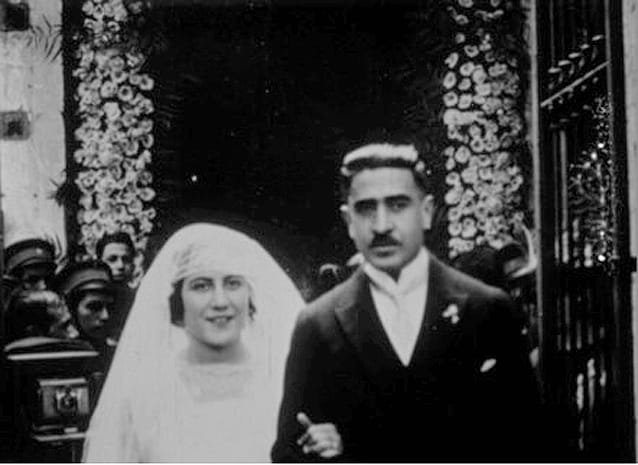 En la foto: Los novios Hortensia Elías Calles y Fernando Torreblanca saliendo de la iglesia de Santa Brígida, 1922.
