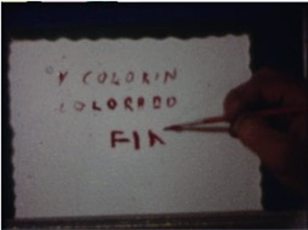 3. Fotograma perteneciente a película 8 mm. de la Colección José Urraca Cristóbal, Se muestra la elaboración de un intertítulo en manuscrito.