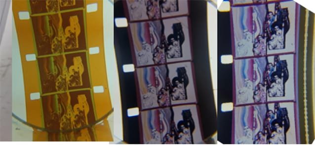 Genealogía de película en 16 mm: Negativo de sonido, negativo de imagen, interpositivo y positivo con audio asociado en la cinta.