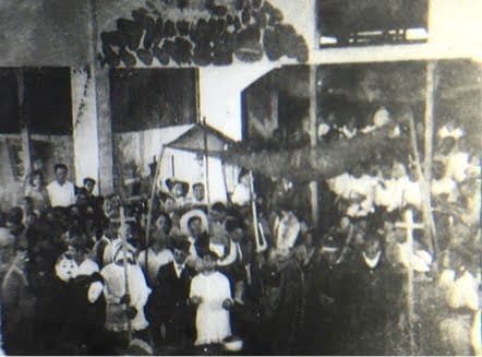 Integrantes de representación teatral que ridiculiza a la iglesia católica y sus principales representantes. Fotograma tomado de: [Garrido Canabal en Nacajuca y Balancán]. Copia de acetato en 35 mm.