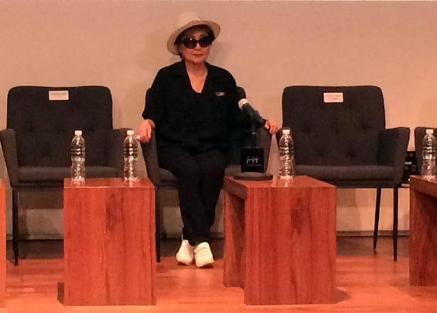 Con más de cincuenta años de trayectoria artística, Yoko Ono (Japón, 1933) abarca una amplia variedad de disciplinas y géneros que incluyen la música, el cine, la escritura, la escultura, la instalación, el happening y el performance. Su trabajo en las últimas cuatro décadas la ha llevado por todo el mundo con un mensaje de paz, feminismo y optimismo vinculado con el arte conceptual o el movimiento Fluxus. Por medio de su trabajo, se ha eregido como una de las mujeres pioneras en cuestionar el concepto de arte y arte-objeto, así como de estimular un nuevo vínculo con el espectador al invitarlos a interactuar con las obras.
