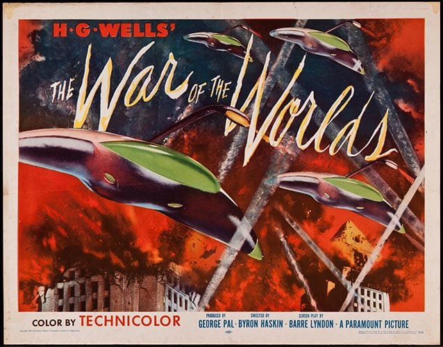 Los conocimientos en biología que desplegaba Wells en su novela se debían a los estudios que había realizado con T. H. Huxley, el gran amigo —y defensor—, de Charles Darwin. Las imágenes que, de la primera adaptación en el cine hiciera Byron Haskins, “La guerra de los mundos” (The War of the Worlds), en 1953, con sus máquinas lenticulares flotantes, con un apéndice en forma de ojo rojo para disparar el rayo mortal, y su sonido característico, sigue siendo mejor que la producción de Steven Spielberg del año 2005, que retoma los trípodes gigantes del libro original, que avanzan sobre las poblaciones, arrasándolo todo.