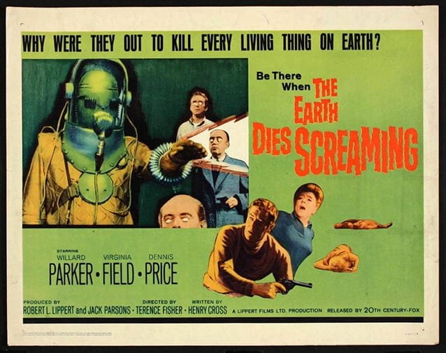 “The Earth Dies Screaming (1964), de Terence Fisher, comienza con dl descarrilamiento de un tren, el choque de un auto contra un muro, un avión desplomándose a tierra, y varias personas cayendo muertas como moscas por la calle. Tanto “Invasores”, como “The Earth Dies Screamig”, logran mantener el suspenso del espectador, hasta culminar este mismo en logradas escenas de terror, a pesar de lo desfasado de los diseños de los invasores robots, cuando estos entran en escena, descubriéndose por fin. En los primeros minutos del metraje de las dos cintas hay un logrado manejo en la creación de atmósferas extrañas, todavía más marcada en la película del experimentado Fisher que en la de Rose.
