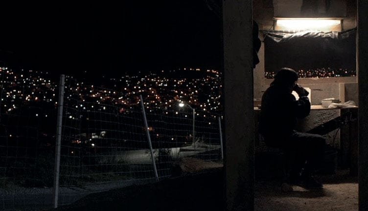 “El vigilante”, de Diego Ros, es la que más he disfrutado de las tres; es por mucho, la que guarda una distancia menor entre aquello que pretende y los resultados que entrega, seguramente porque su enfoque guarda una escala más humana y modesta que sus compañeras de jornada. Cuenta las pericias del guardia nocturno de una obra en construcción en las afueras de la Ciudad de México en el transcurso de una noche. Al inicio, espera el relevo de un compañero que lo sustituya mientras acude a atender un compromiso.