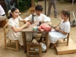 Nos movemos para comer a Coyuca de Catalán. El sueño en el trayecto es abrumador. Aunque ya no es novedad, el calor sigue estando arriba de los 35 grados. Por fin, el museo regional de Coyuca ha sido convertido en un foro donde habitaremos a partir de ahora. Caras nuevas se pasean con sus vestidos y peinados de época. Toca el turno a las niñas de la región: Panchita y Marilí, dos pequeñas de menos de 10 años, una de Otlatepec y la otra de Villa Madero, quienes interpretan respectivamente a Cuca y Mine, un par de “guachitas fieras”.