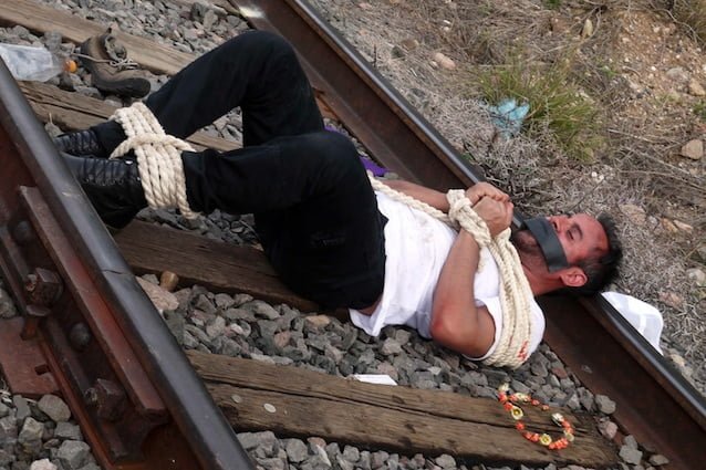 El corto narra la vida de Lalo, un director de cine que se hace famoso tras grabar una película sobre los migrantes. Súbitamente es secuestrado, amarrado y abandonado en las vías. Le queda poco tiempo antes de que pase el tren, sin embargo su enemigo no son ni las cuerdas ni la mordaza, sino la indiferencia de quienes lo observan sin ayudarlo.