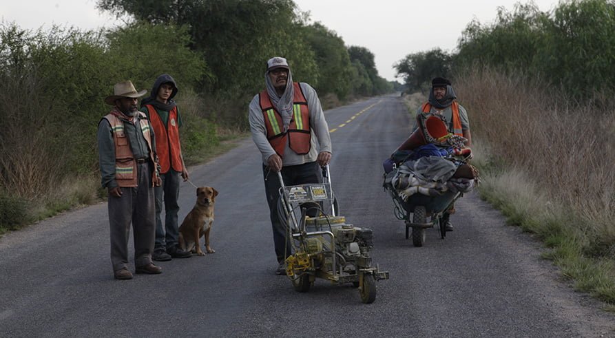 “Quería contar una historia masculina, de hombres trabajadores. La idea surgió a partir de un viaje en carretera que hice a San Luis Potosí donde vi a un grupo que precisamente estaba pintando una línea amarilla. Quise saber qué había detrás de ellos”, dijo García.