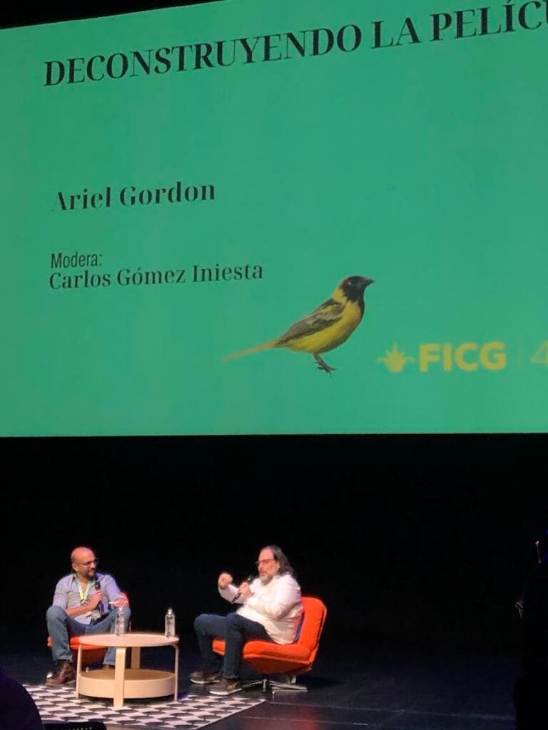 Hoy, la clase magistral fue impresionantemente constructiva: “Deconstruyendo la película” con Ariel Gordon, moderado por Carlos Gómez I. Nos platicó de cómo ser consecuentes con nuestra narrativa, de buscar coherencia en cada una de las partes: la energía, los presupuestos. Hacer una película es como un maratón, muy difícil. Hay que dosificar la energía y los recursos, porque son finitos. A todos les falta dinero, sea el esquema que sea.
