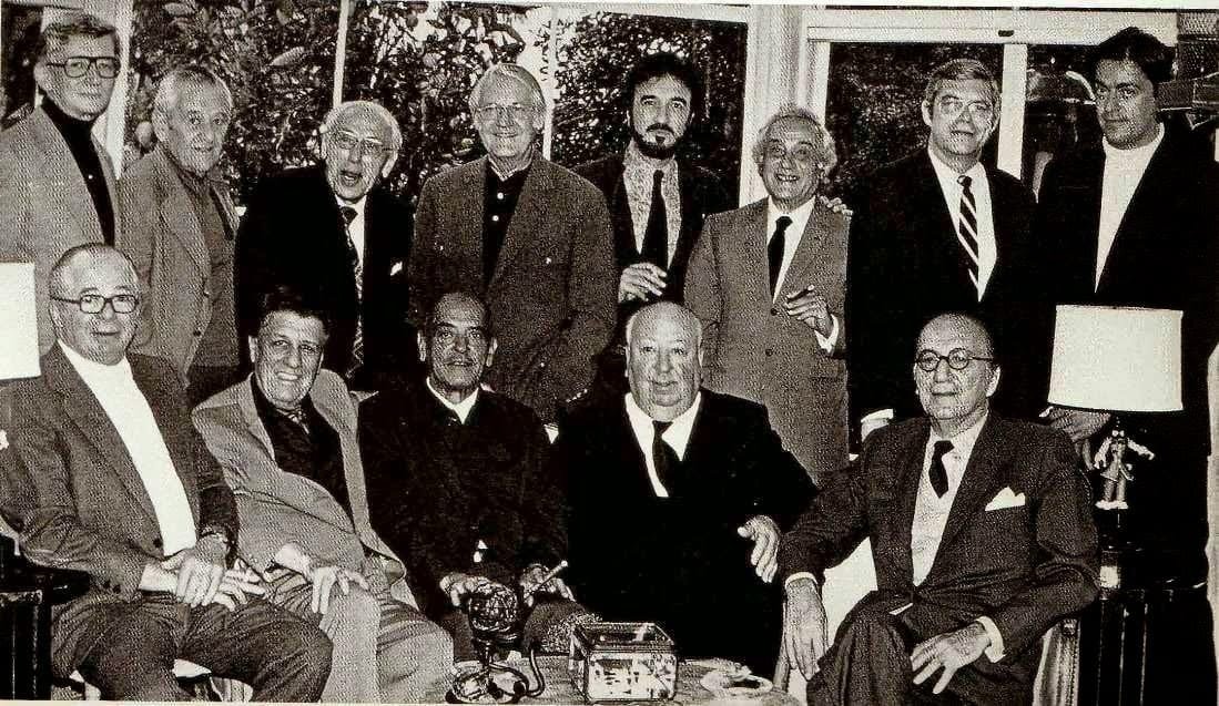 De pie: Robert Mulligan, William Wyler, George Cukor, Robert Wise, Jean Claude-Carriere, Serge Silberman. Sentados: Billy Wilder, George Stevens, Luis Buñuel, Alfred Hitchcock y Rouben Mamoulian