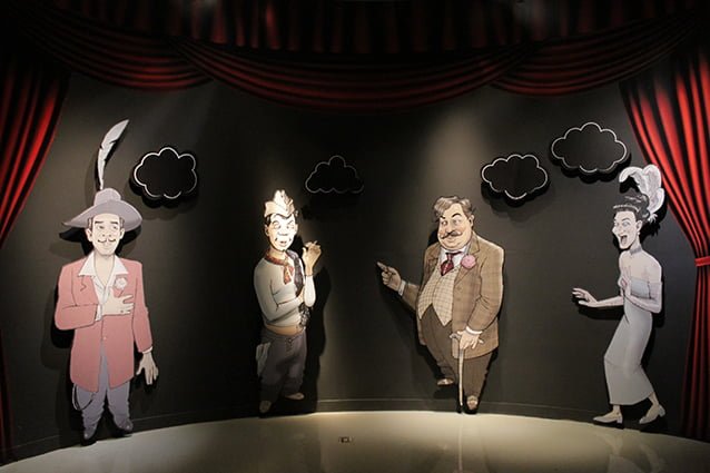 Destacan entre las piezas ropa, fotos, carteles, dibujos, videos, partituras que sirve de homenaje a tres grandes de la comedia: Mario Moreno Cantinflas; Germán Valdés Tin Tan y Joaquín Pardavé.