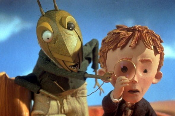 Pero Nueva York, en la mente de Jim, es sólo eso: un sueño. Sin amigos y sin unos padres que lo animen, llegar allá luce imposible. Sin embargo, cuando Jim decide proteger a una indefensa araña que había anidado en su ventana de la implacable escoba de sus tías/brujas, la situación empieza a transformarse. Un misterioso hombre atraviesa el muro y le entrega unos dulces extrañísimos que describe como lenguas de cocodrilo hervidas en un cráneo. Son, por supuesto, objetos mágicos. Pero Jim no logra mantenerlos ocultos y acaban convirtiéndose en un durazno pendiente de una rama, un durazno que, ante la vista estéril del jardín, sus tías no pasan por alto. El durazno presenta de pronto un inusitado crecimiento que Spiker y Sponge capitalizan cobrando algunos billetes a los vecinos por pasar a verlo. Jim vuelve a ser excluido, pero cuando creía que todo estaba perdido encuentra entre la tierra una de esas lenguas fluorescentes que alcanza a atrapar y que decide comer. Ello, junto con el trozo que arranca al jugosísimo durazno gigante, le abrirá una puerta al interior de la fruta. El paso por el túnel, Jim no lo sabe pero el espectador sí, nos regala una de esas secuencias inolvidables en la historia de la animación cuando la silueta real de Jim comienza a metamorfosearse en una silueta animada. Jim, al llegar al fin del pasadizo, es ahora un ser de plastilina (animado con la técnica del stop motion). Bueno, no sólo él sino también los insectos de tamaño exorbitante que viven al interior del durazno y que se convertirán, de ahí en adelante, en sus mejores amigos. Con ellos, Jim superará sus miedos y, sobre todo, volverá a creer en sí mismo recordando aquella enseñanza paterna: cuando el mundo se te cierra, lo único que necesitas es un cambio de perspectiva. En el viaje en el durazno gigante, movido por gaviotas (antecesoras de los globos que hacen volar la casa del refunfuñón Carl en “Up: una aventura de altura” [Pet Docter, 2009]) a través de todo el Atlántico hasta llegar, sí, al mismo sitio inmortalizado cinematográficamente por el King Kong de 1933 (Merian C. Cooper y Ernest B. Schoedsack): la antena del Empire State. Desde ahí, el Jim de carne y hueso, en compañía de sus amigos animados, enfrentará a sus engorrosas tías mientras que la población neoyorquina (re)descubrirá la fuerza de la imaginación y decidirá darle acogida a él y a los enormes insectos. Jim, viviendo ahora en el corazón del durazno, se encargará incansablemente de recordarles a los niños de Nueva York precisamente eso: los pequeños obstáculos, y los grandes, de la vida cotidiana requieren que alimentemos nuestra fantasía ya que es sólo ella la que nos permite el añorado cambio de perspectiva.