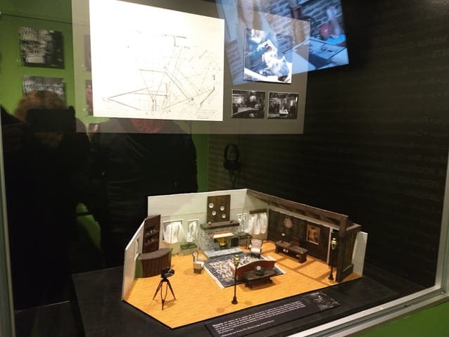 EL: La de escenógrafos está compuesta por un monitor en el que el pueden verse fragmentos de entrevistas realizadas a algunos de los directores de arte contemporáneos más importantes, como Eugenio Caballero, Salvador Parra, Lorenza Manrique y Alejandro García, hablan de algunos películas emblemáticas filmadas en los Churubusco.