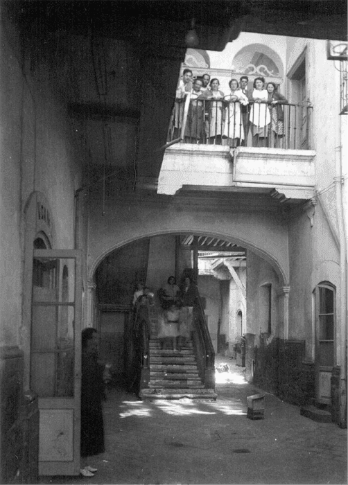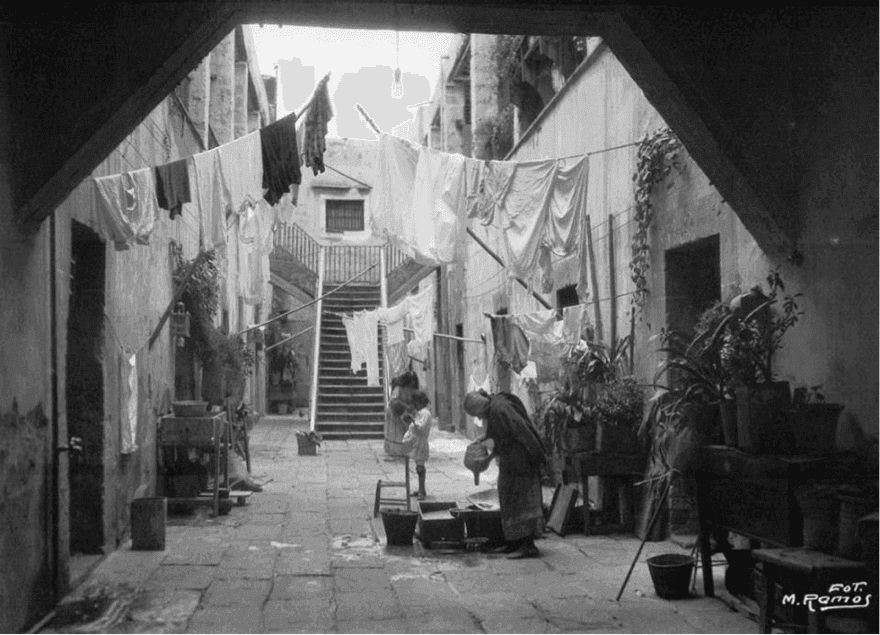 Manuel Ramos (Ciudad de México, c.a. 1930). Interior de una vecindad en el Centro Histórico de la Ciudad de México. Fuente: Archivo Fotográfico Manuel Ramos [En línea].