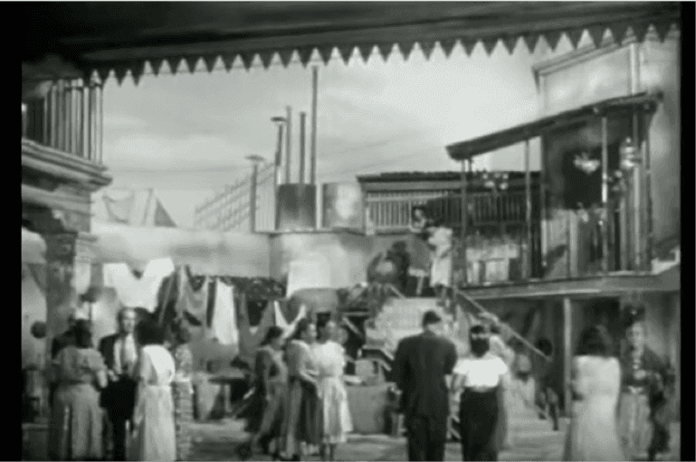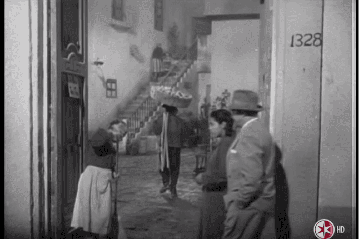 Cuadro tipológico de vecindad en el minuto 1:38 de la cinta “El Suavecito” (Fernando Méndez, 1950):