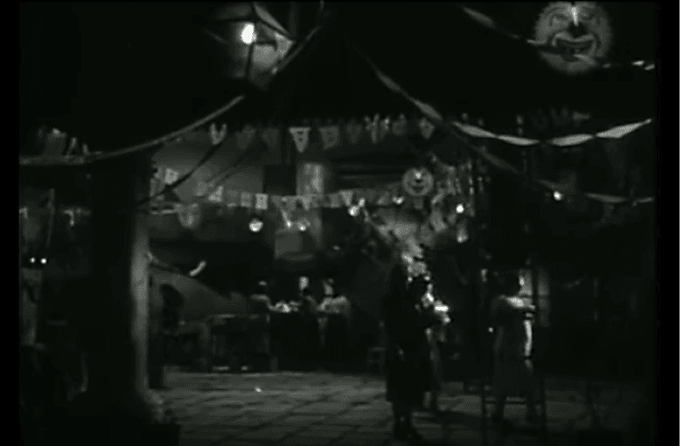(Arriba) Recreación de vecindad con mucha vida para la fiesta del Profe Sebas y (abajo) vista de la puerta cuando Rosita se recupera, en “Puerta, joven (Miguel M. Delgado, 1948)”. Minutos 13:14 y 1h 44:02. Fuente: https://www.youtube.com/watch?v=KdG3VJrZIWo