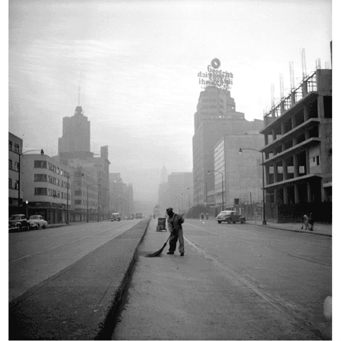 Nacho López (Ciudad de México, 1950). “Barrendero en la calle Ejido”.