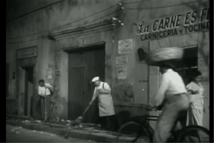 Locatarios que barren fuera de la portería de la vecindad, en “Puerta, joven” (Miguel M. Delgado, 1949). Minutos 1:38 y 1:56. Fuente: https://www.youtube.com/watch?v=KdG3VJrZIWo
