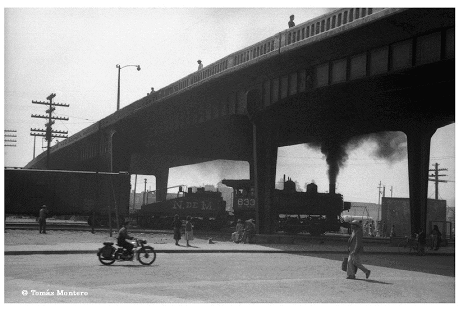 Tomás Montero (Ciudad de México, 1943). “Puente de Nonoalco con tren y bicicleta”. Fuente: http://cuartoscuro.com.mx/2014/10/fotografo-de-oposicion/