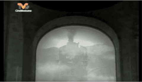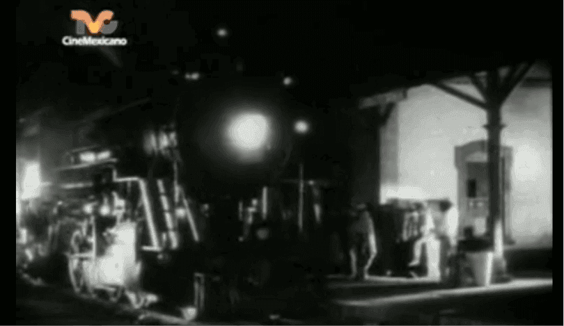 Homenaje a la fotografía del ferrocarril en “La bestia negra” (Gabriel Soria, 1939), para el caso en su ubicación urbana, tenida como tradición artística visual desde el fotoperiodismo de la Revolución Mexicana. Minuto 5:28. Fuente: https://www.youtube.com/watch?v=TPFOBKXCrBE