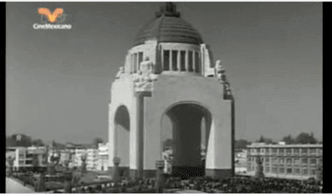 Mítica escena final de la Convención en “La bestia negra” (Gabriel Soria, 1939), de los ferrocarrileros en la entrada triunfal del despliegue conjuntivo, con el Himno ferrocarrilero y el ad hoc símbolo nacional: el Monumento a la Revolución. Receta propagandística de trabajadores, reunión, alegoría de la civilidad urbana alcanzada en el tren e identidad. Minutos 1h 36:31 y 1h 37:13. Fuente: https://www.youtube.com/watch?v=TPFOBKXCrBE
