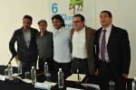 EN LA IMAGEN: Matthias Ehrenberg, Alejandro Springall, Eugenio Derbez, Juan Manuel González y Nezahualcóyotl Baños, del Consejo para la Cultura y las Artes de Nuevo León, durante la conferencia de prensa del FICM.