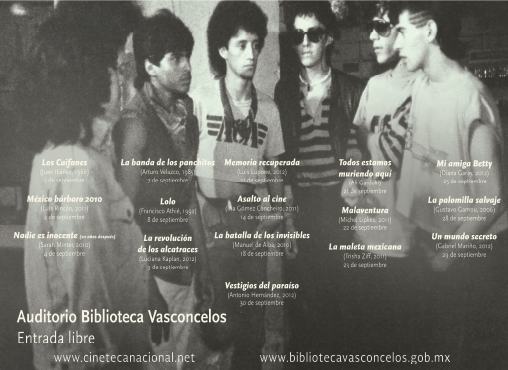 Uno de los eventos más relevantes de este ciclo se llevará a cabo el sábado 7 de septiembre con la presentación del largometraje “La banda de Los Panchitos” (México, 1987), que nos muestra la manera de vivir de esta banda en la ciudad, cuyos integrantes cometían abusos, asaltos y atracos para conseguir drogas. Es relevante señalar que se contará con la presencia del director Arturo Velazco, poniendo fin a los rumores que predominaron durante años sobre su desaparición e incluso sobre su muerte.