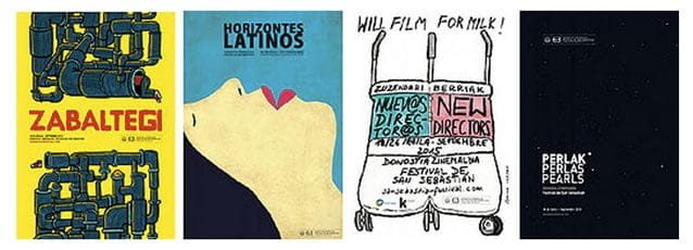 El pasado viernes se presentaron en San Sebastian los carteles que se encargaran de dar a conocer el festival de cine donostiarra del próximo septiembre, una expresión gráfica que el año pasado llamó negativamente la atención por seleccionar y premiar un affiche ¡Que sólo tenía letras sobre un fondo monócromo! ¿Qué decir?, sino quedar perplejos ante un nuevo cartel de la Sección Oficial que desde luego jamás deja indiferente… Hemos pasado del “austericidio” de la pasada edición, al “curioso” y colorista que se ha llevado la “palma” este año.