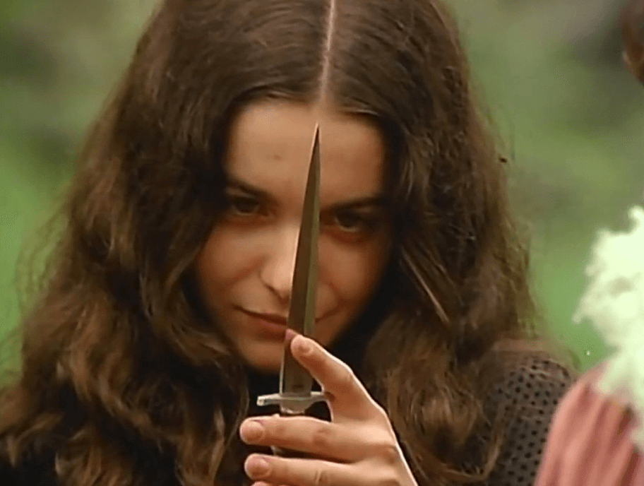 Pero la versión nacional va más lejos de los cursis escarceos lésbicos de la protagonista de Vadim, que se dedicaba a extraer sangre de sus víctimas mediante las espinas de una rosa. Alucarda es, en primer término, “hija de las tinieblas”, es decir, del diablo, y por ello su madre, pretendiendo salvarla de sus genes malignos, antes de morir la envía a un convento donde se cría, alejada del mundo. Pero todo es inútil: apenas llega a la adolescencia una nueva pupila arriba al convento y entre ambas surgirá una pasión avasallante, en la que la sangre juega un papel primordial.